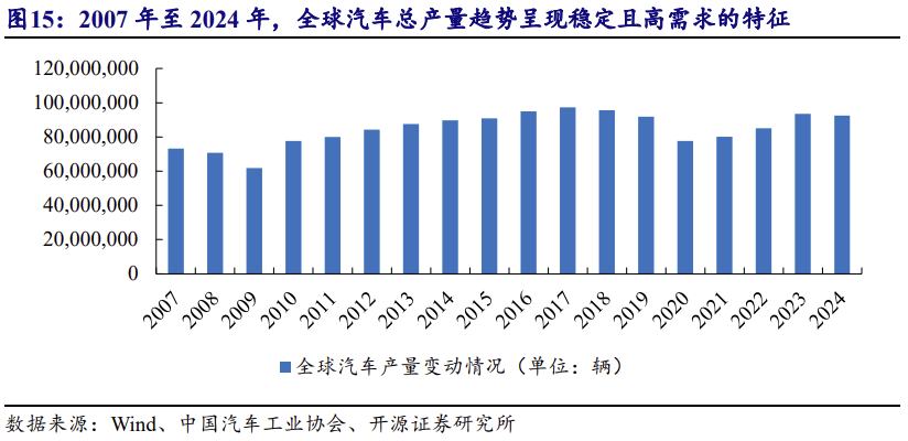 全球汽车工业曾经进入成熟期。2008 年及 2009 年遭到全球金融危机影响,全球汽车产量别离同比下降 3。75%、12。38%;2010 年,跟着美国、日本市场苏醒以及中 国、印度等新兴市场的持续较快增加,全球汽车产量同比上升 25。75%;2017 年,全 球汽车产量同比增加 2。45%,达到 9,730。25 万辆,产量创汗青新高。2018 年及 2019 年,受全球次要市场经济增加迟缓等要素等影响,全球汽车产量别离为 9,686。90 万 辆、9,178。69 万辆,同比别离下降 0。45%、5。25%。受国际宏不雅经济下行的 冲击,全球汽车产量为 7,762。16 万辆,同比下降 15。43%。