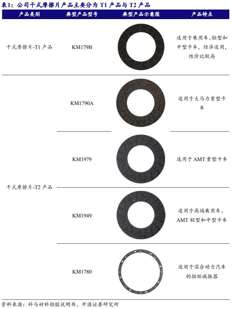 乘用车市场,公司干式摩擦片产物次要使用于手动挡乘用车、保守及新能源混 合动力乘用车;商用车市场,公司干式摩擦片产物次要使用于手动挡商用车、AMT 从动挡商用车、新能源夹杂动力商用车。