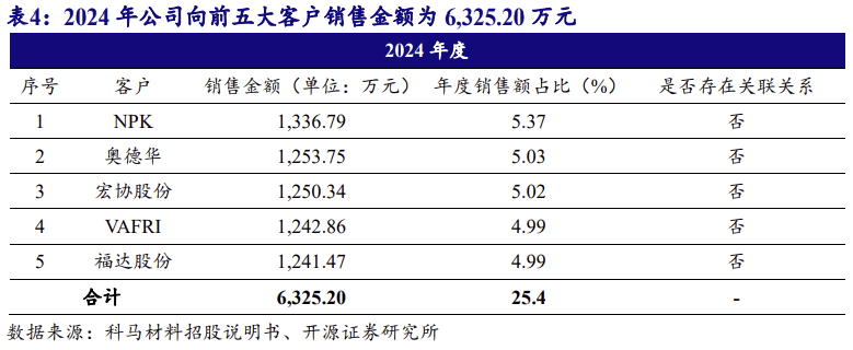 2024 年,公司向前五大客户发卖金额为 6,325。20 万元,占停业收入的比例为 25。40%。各客户均未取公司存正在联系关系关系。