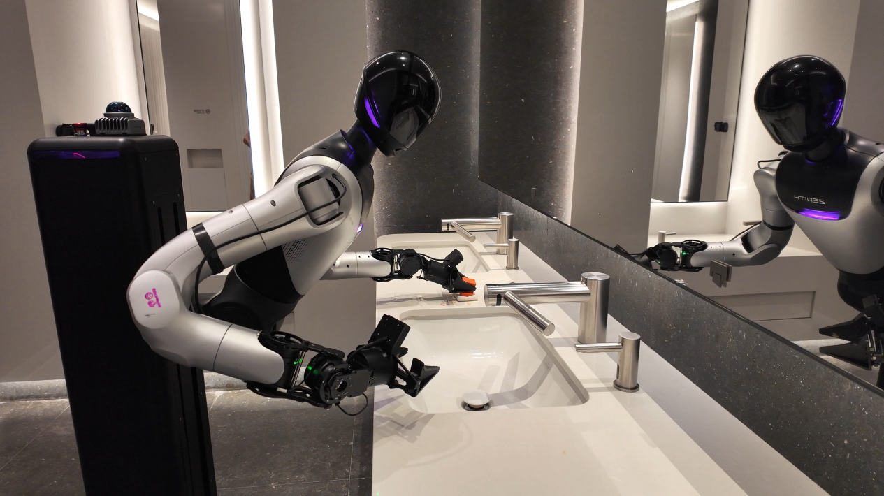 酒店和商场等区域持久存正在洁净人力欠缺取办事不不变的痛点。零次方机械人可不变、按照尺度施行吸尘、拖地、消毒、擦拭等复杂性动做。业内专家指出,贸易洁净场景是具身智能最易冲破的规模化市场,也是将来家庭场景洁净能力的最佳前置锻炼空间。